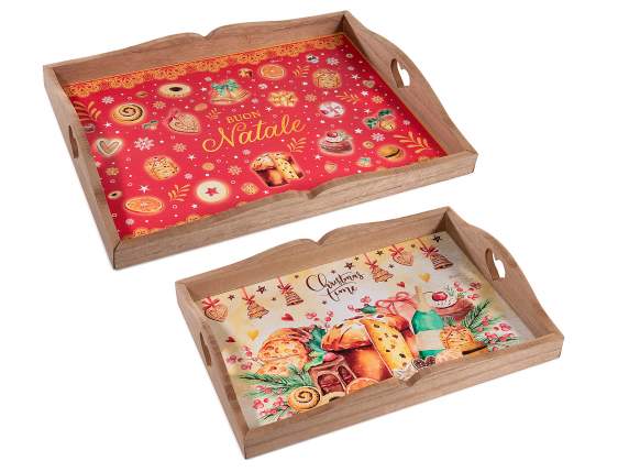 Weihnachtstablett aus Holz mit herzförmigen Griffen