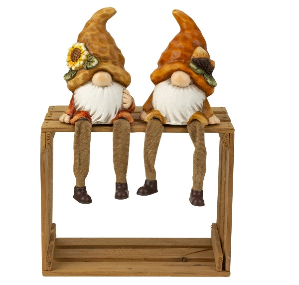Gnomo dormiglione arancione con gambe penzolanti in ceramica