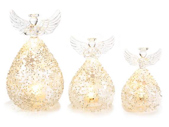 Angeli natalizi in vetro deocrato con luci led in set da 3 pz