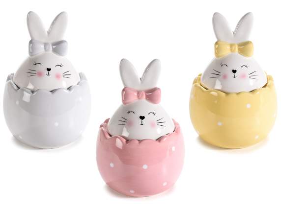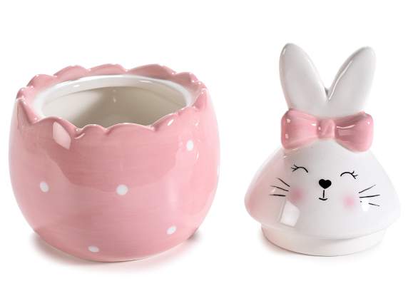 Barattolo alimentare uovo in ceramica con coniglio e fiocco