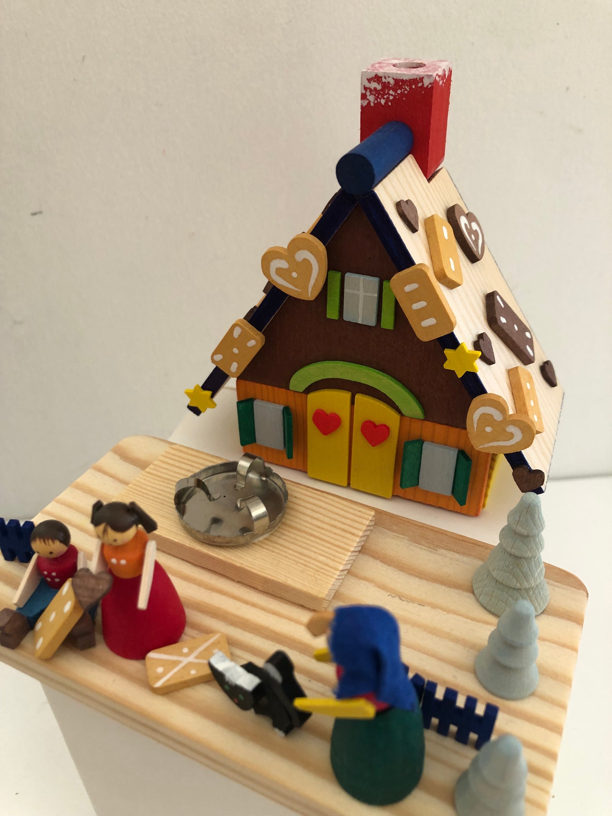 all'interno della casetta viene posto un cono d incenso; l'incenso brucia e il fumo fuoriesce dalla comignolo.