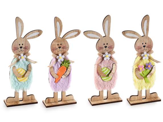 Coniglio in legno da appoggiare con vestito eco-fur e decori