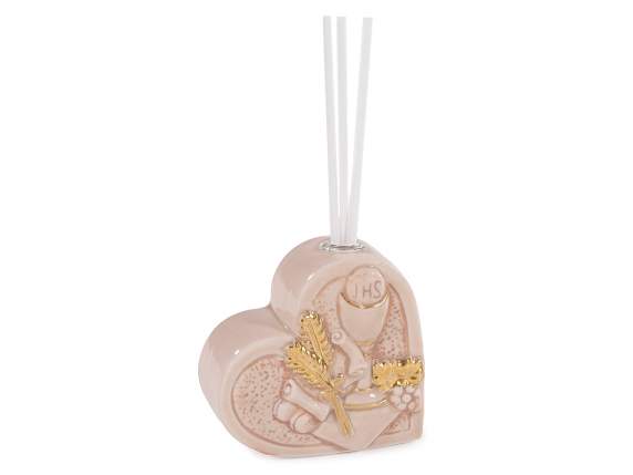 Cuore porcellana Comunione con vasetto e stick per profumare