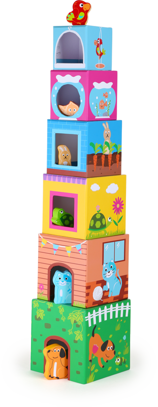 - I dadi colorati di dimensioni diverse in robusto cartonato promuovono in modo ludico la motricità dei bambini.
