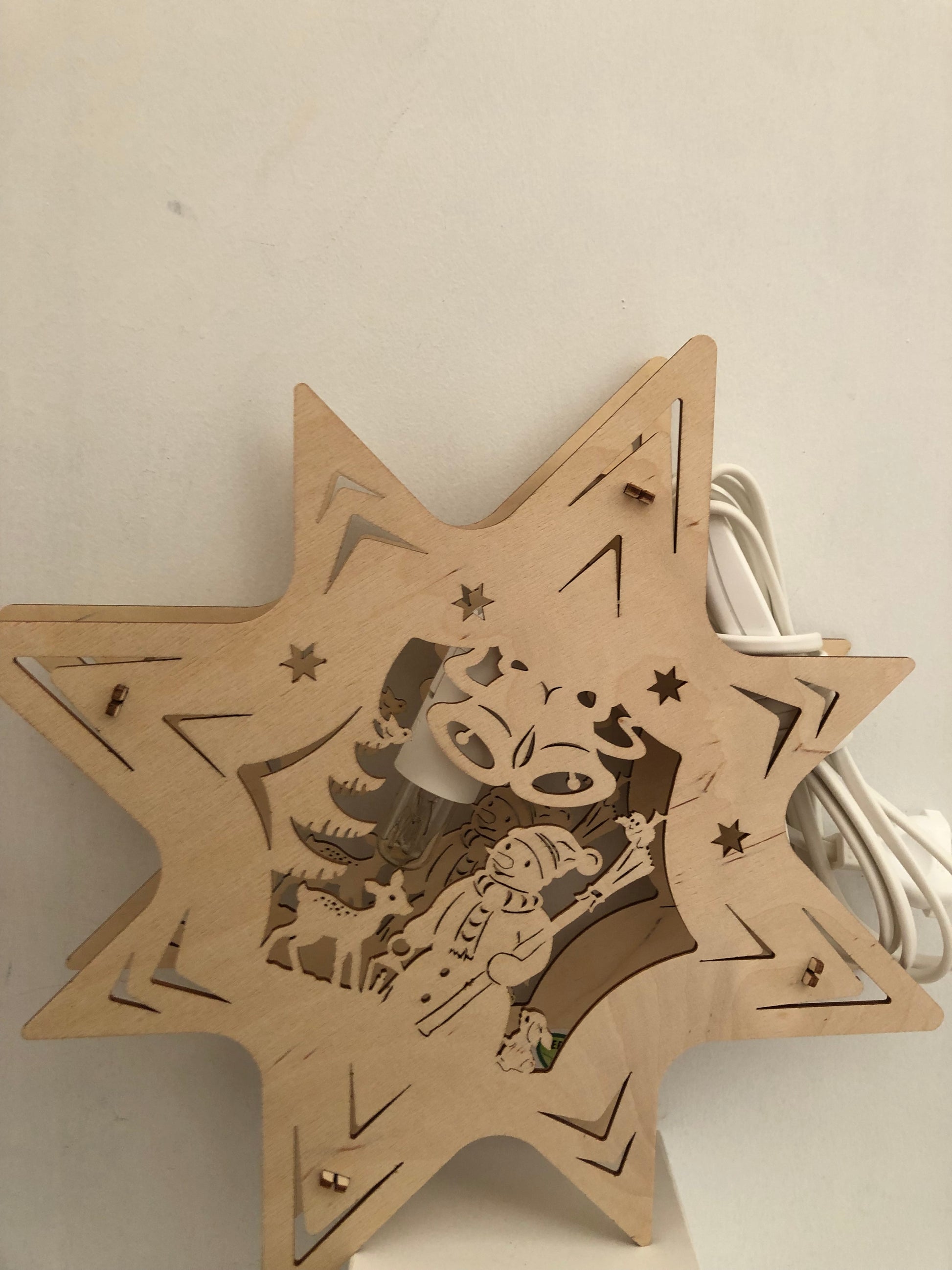 addobbo in legno che si illumina da appendere "pupazzo di neve"