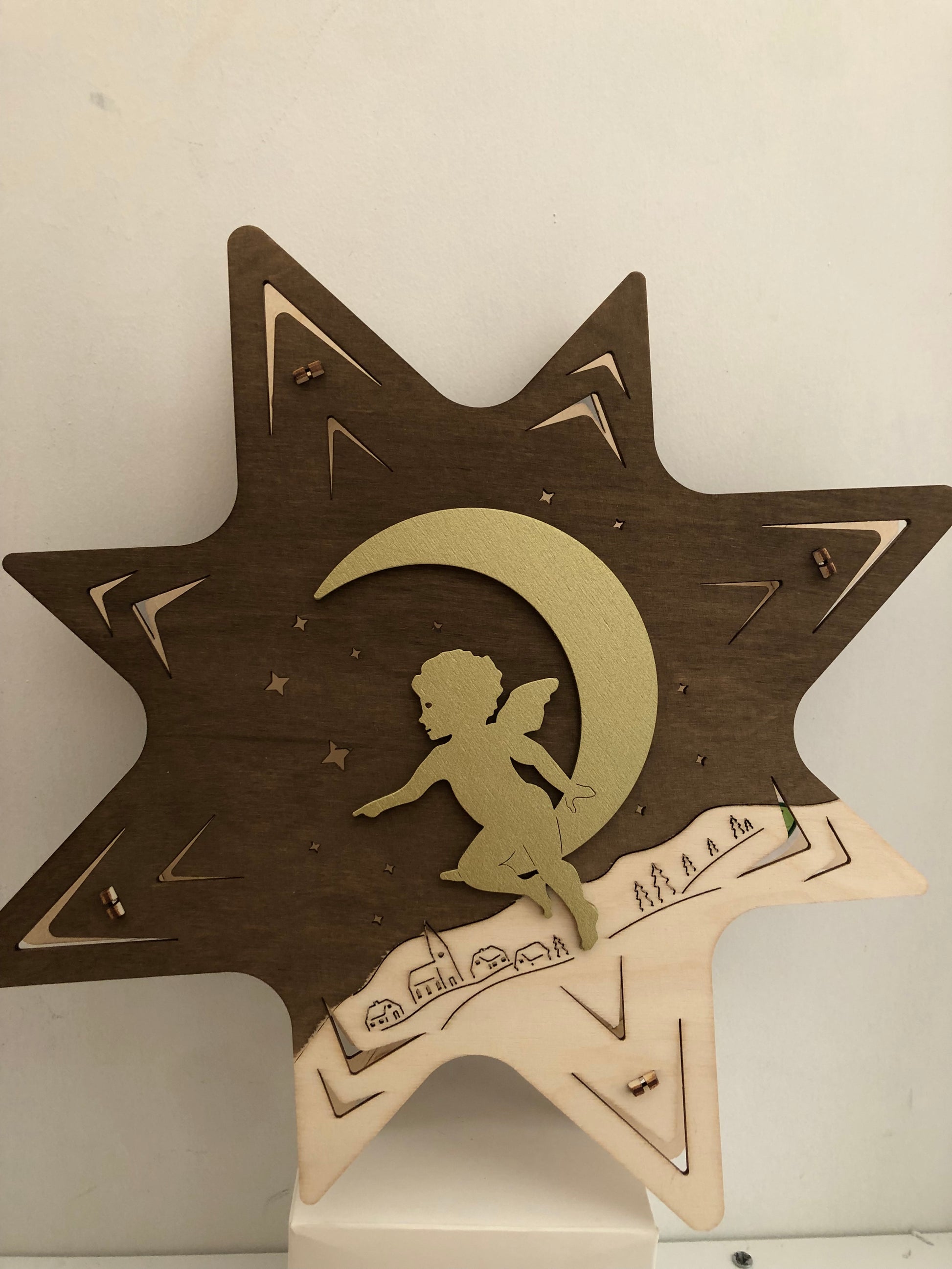 figura che si illumina da appendere in legno per finestre "angelo su luna"