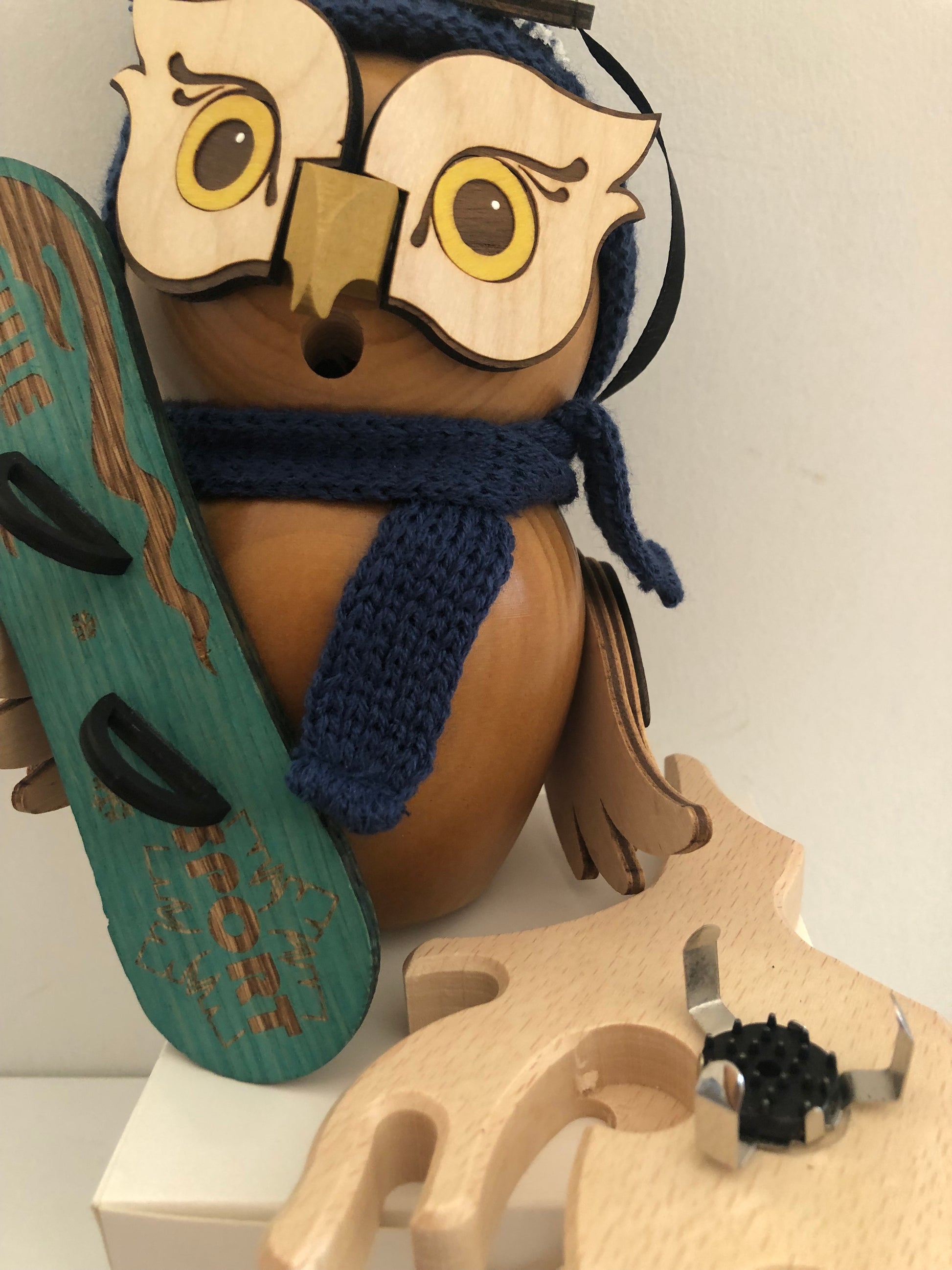 gufo in legno snowboard porta incenso