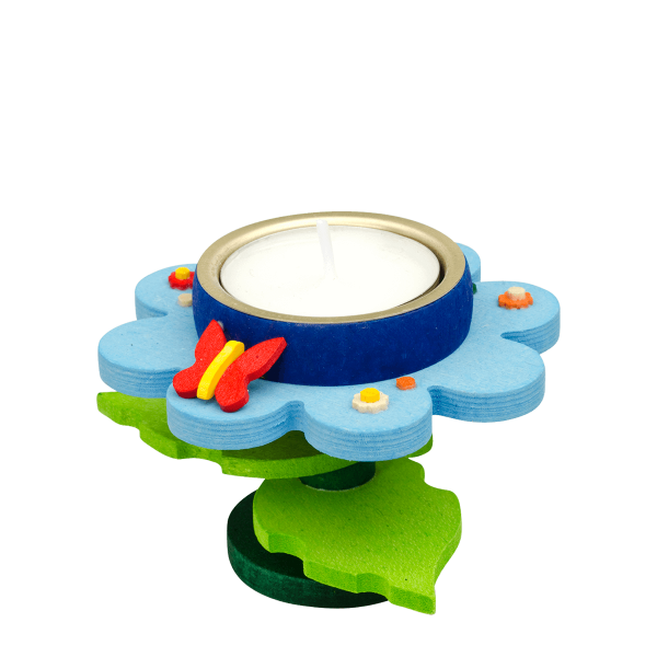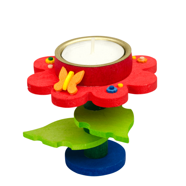 porta candele in legno a forma di fiore con farfalline
