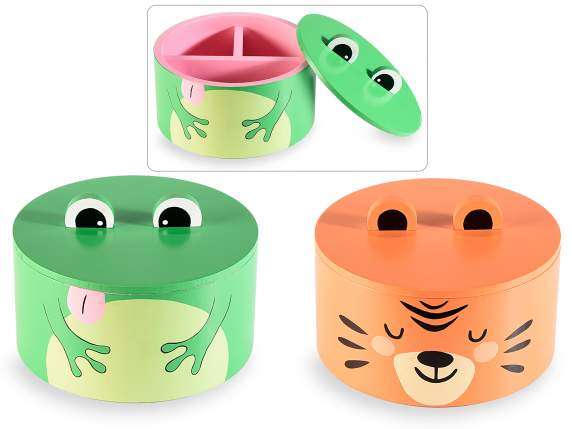 Portaoggetti legno ad animaletto con 3 scomparti e coperchio