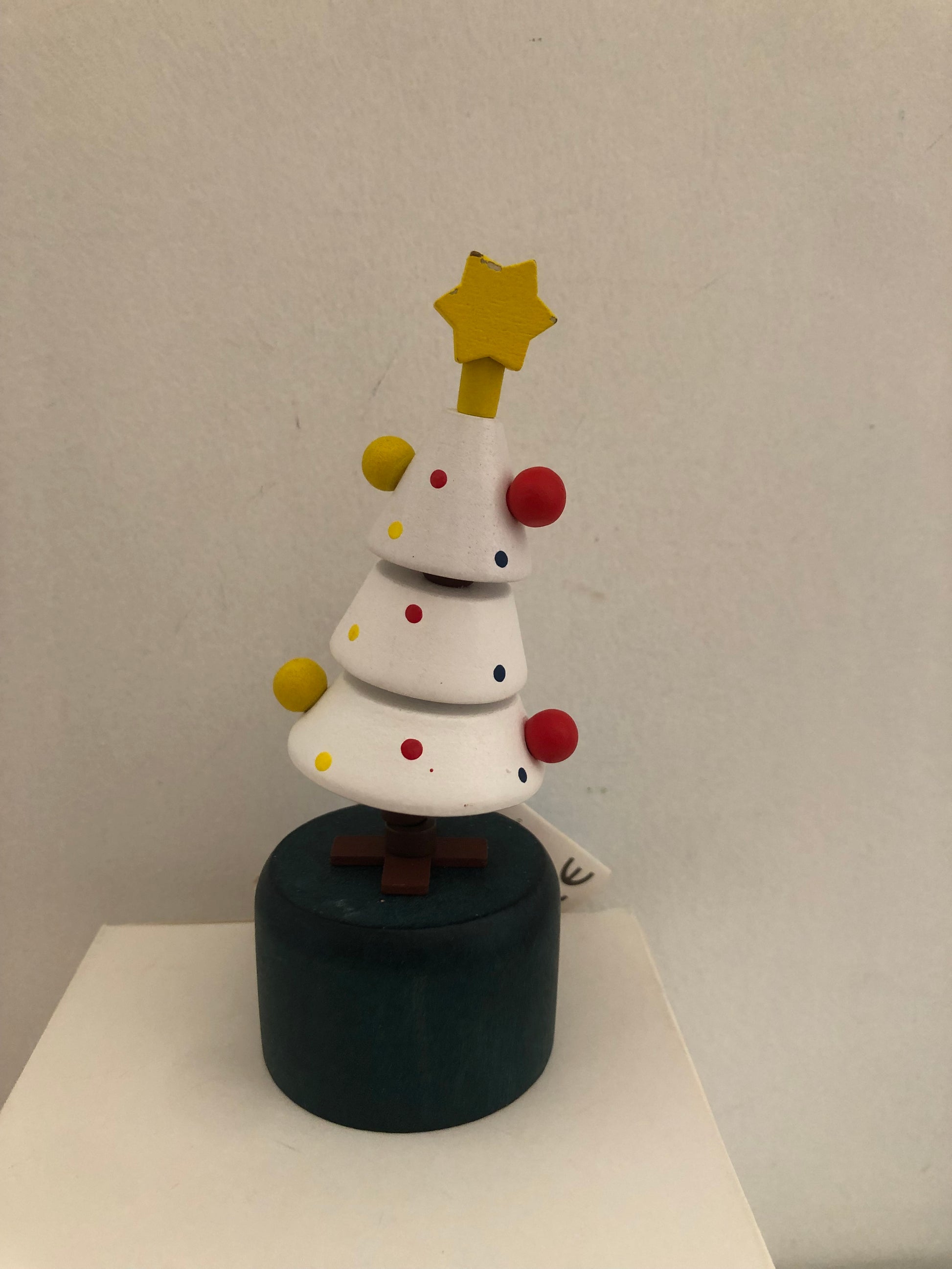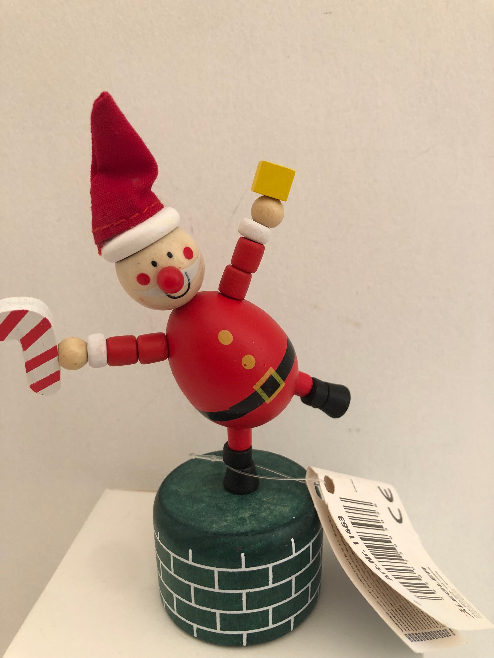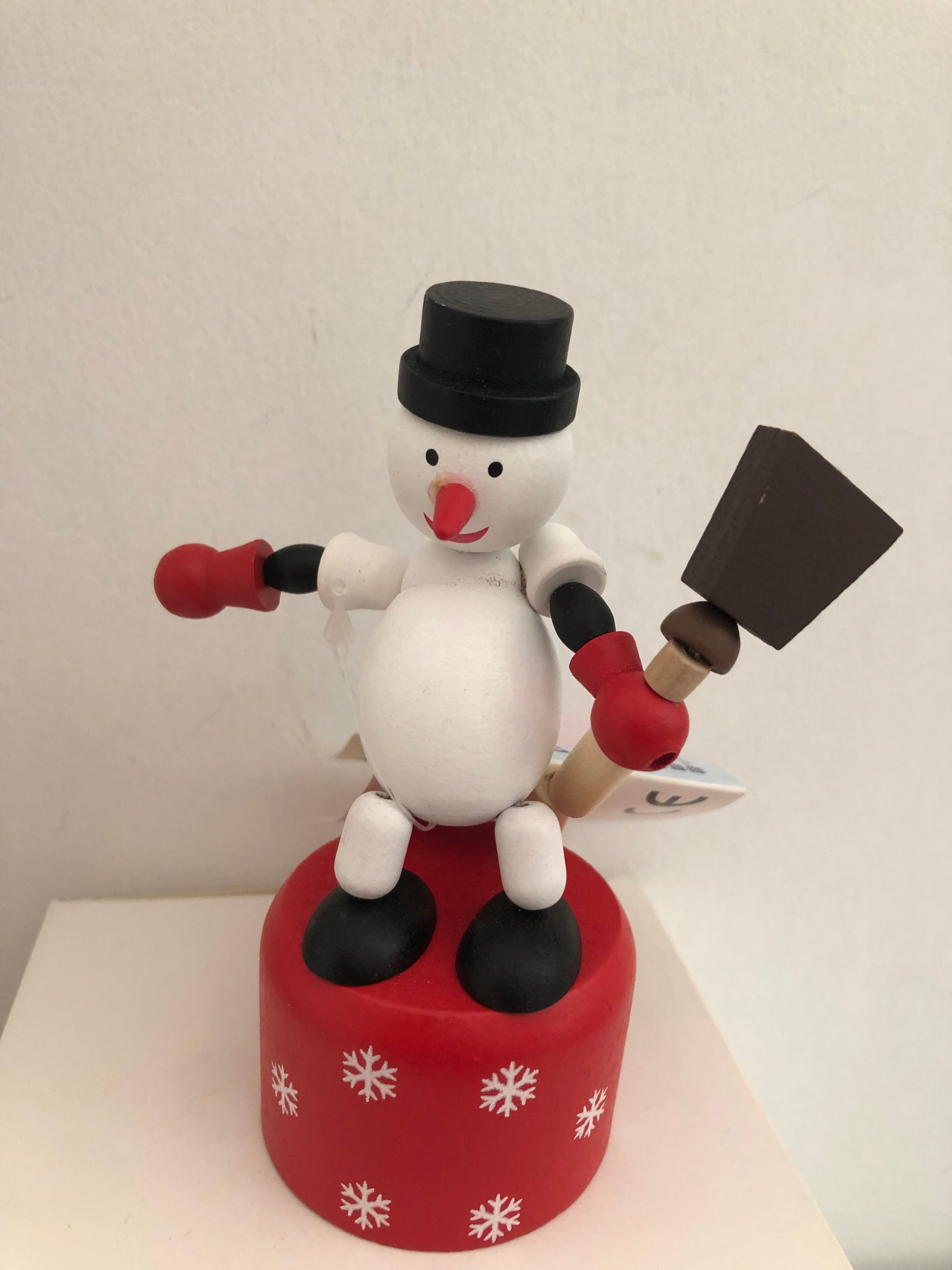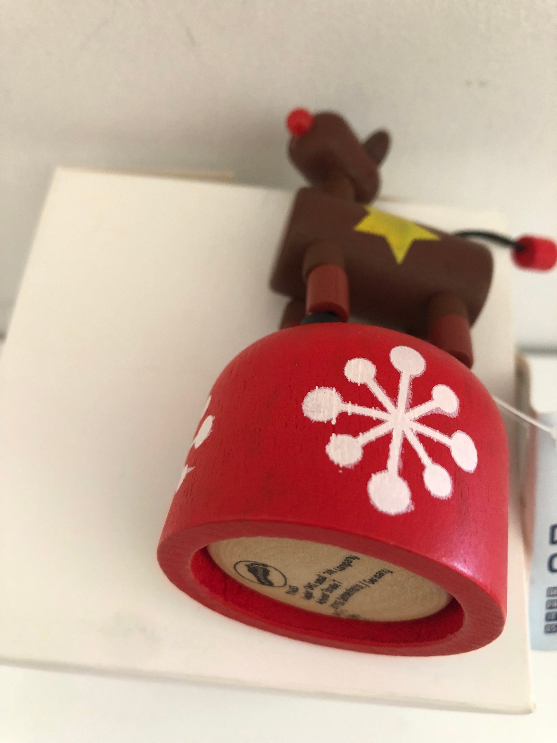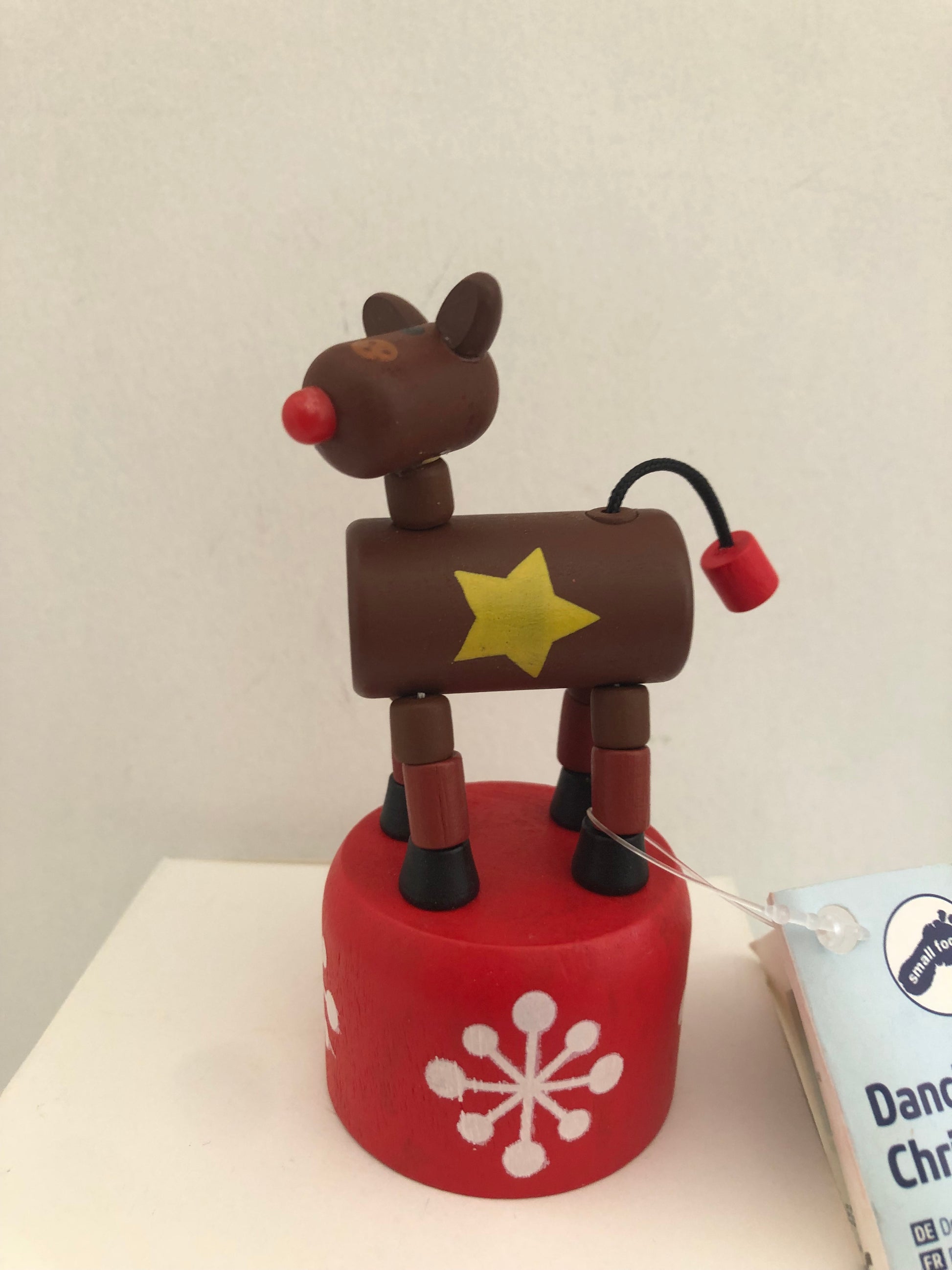 schiacciando la parte inferiore dell'oggetto l'animaletto in legno si muove