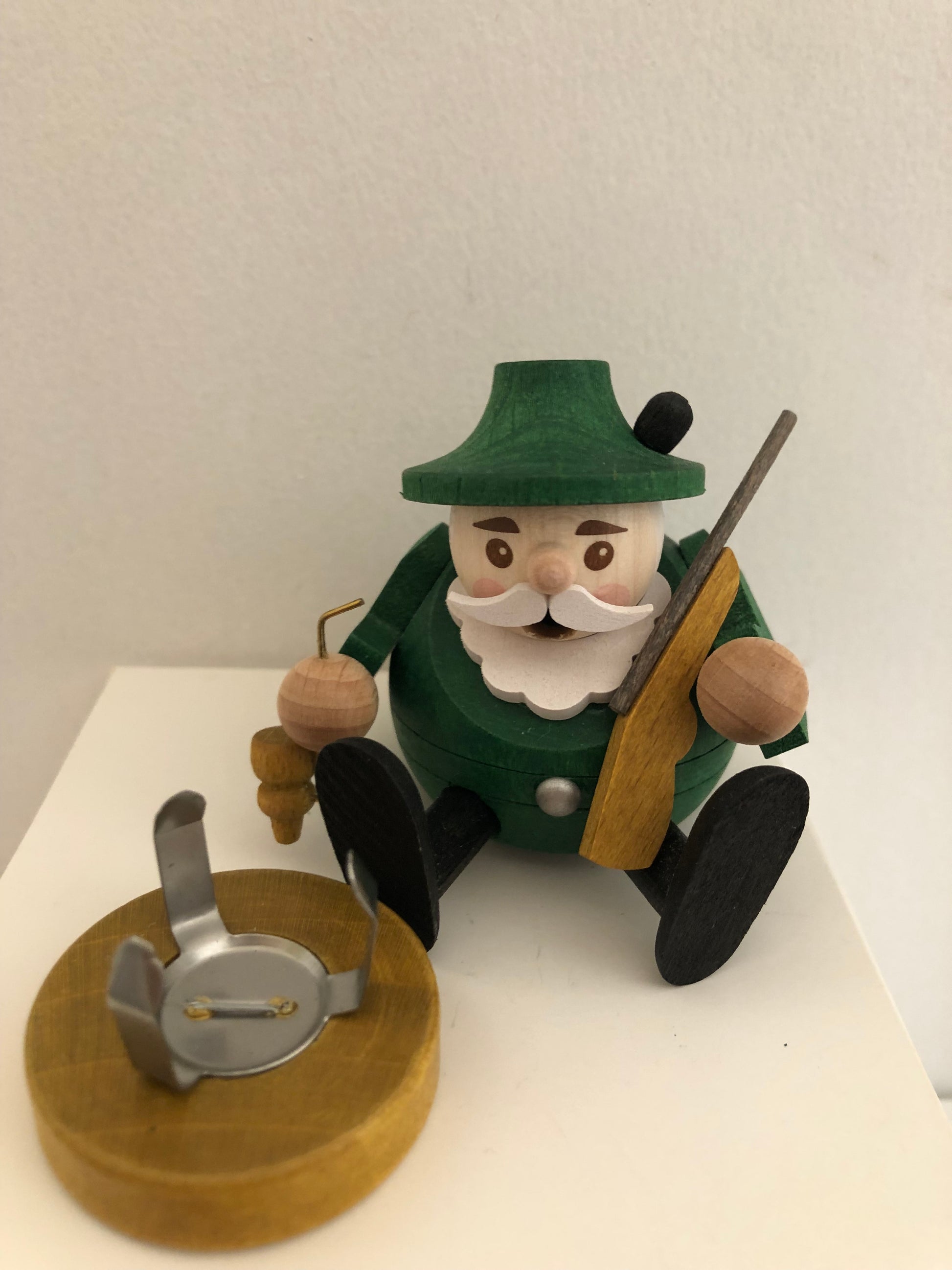 all'interno del pupazzetto viene posto un cono d incenso; l'incenso brucia e il fumo fuoriesce dalla bocca.