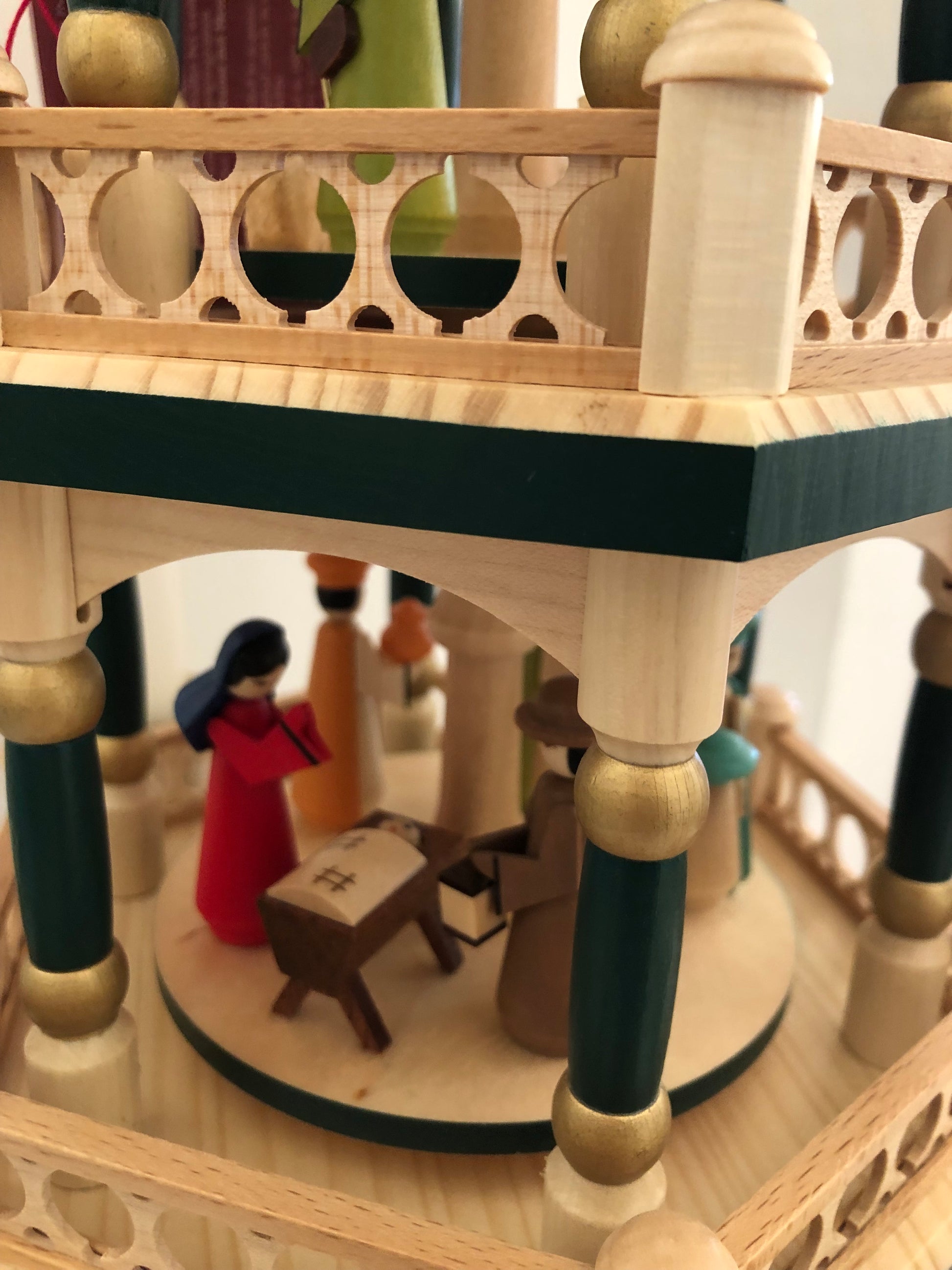 In cima alla struttura fu inserita un'elica che sfruttava l'aria calda rilasciata dalle candele per far girare le figure.
