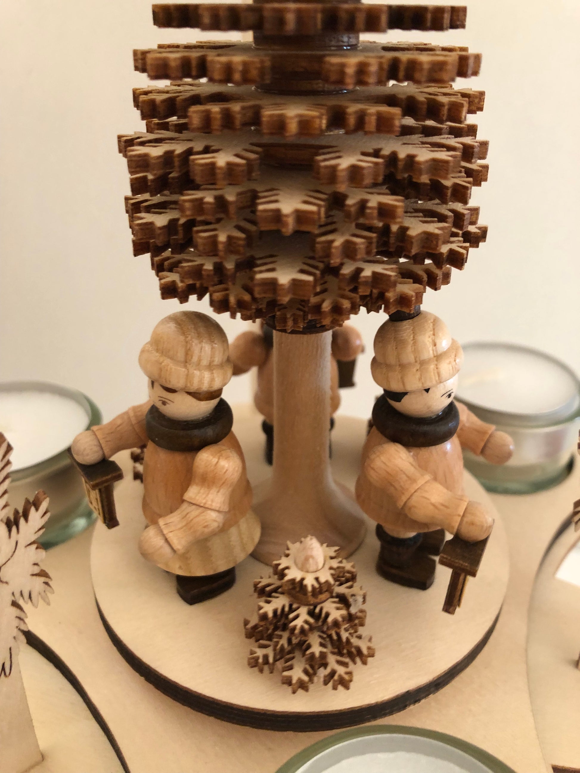 In cima alla struttura fu inserita un'elica che sfruttava l'aria calda rilasciata dalle candele per far girare le figure.