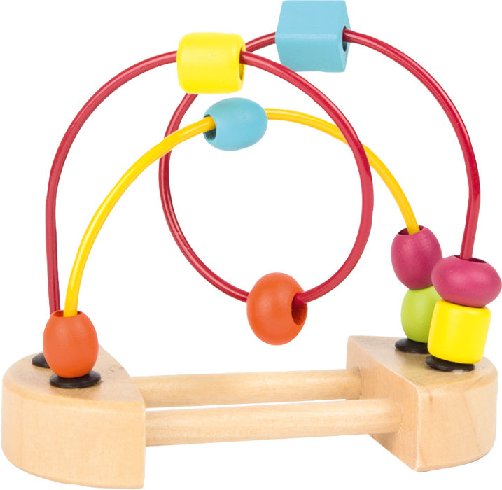 Questi tre piccoli giochi in legno con sfere colorate, allenano le capacità motorie dei piccoli. I fili rimangono saldi sulla base in legno, la quale puo essere anche mantenuta facilmente in mano. Le sfere in legno e i dadi vengono spostati lungo i diversi fili di metallo ondulati.