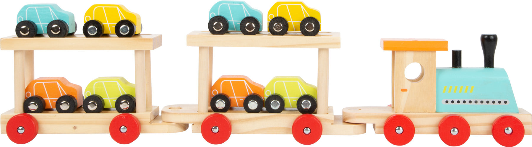 treno in legno con automobili