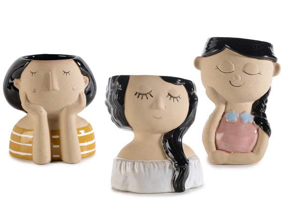 Vaso /Portatrucchi decorativo in porcellana volto di ragazza